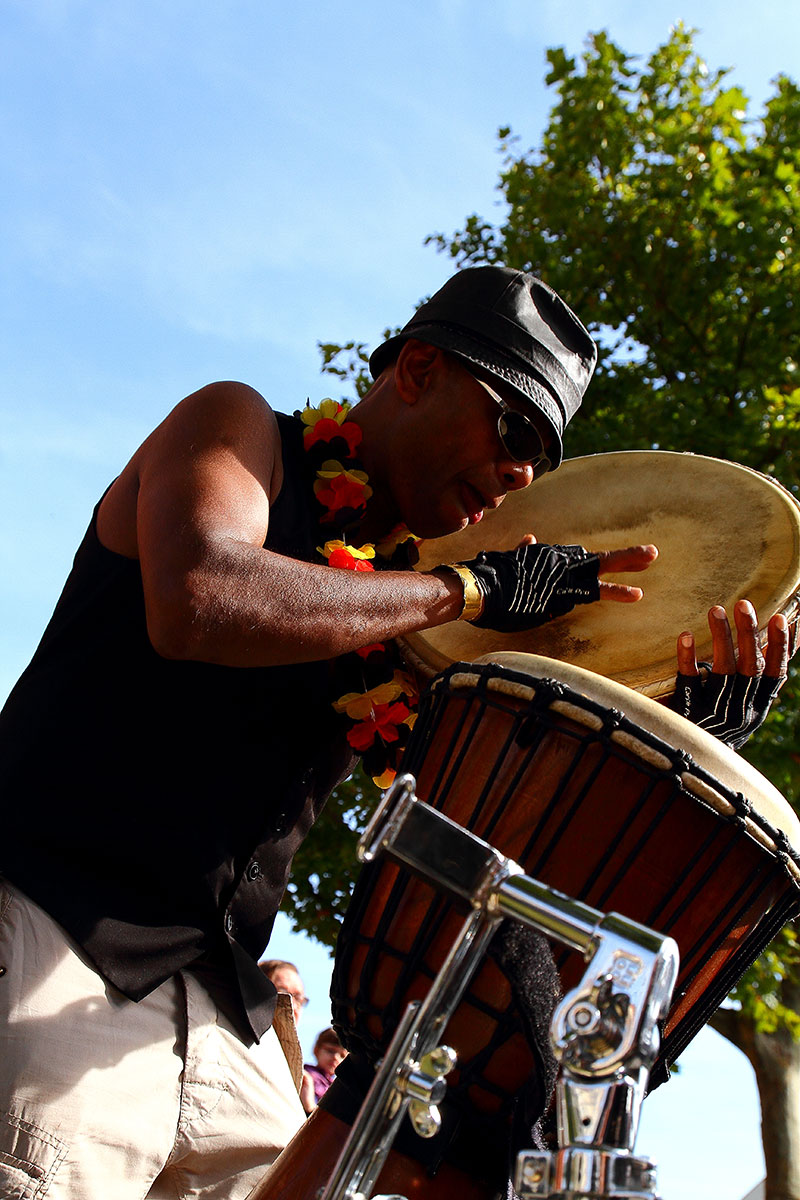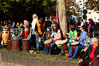 Trommeln und Tanzen sind in der afrikanischen Kultur untrennbar miteinander verbunden und begleiten alle Feste afrikanischen Lebens. Afrikanische Rhythmen faszinieren durch ihre hohe Geschwindigkeit und die Improvisationslust der Trommler und Tänzer. In diesem Kurs werden die Teilnehmer, die trommeln wollen, afrikanische Rhythmen lernen und die Teilnehmer, die tanzen wollen Bewegungen und Schrittfolgen, die mit den Rhythmen der Trommeln korrespondieren.
